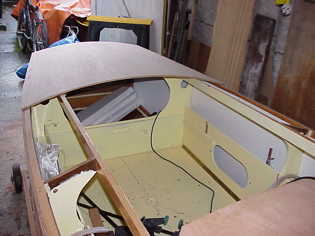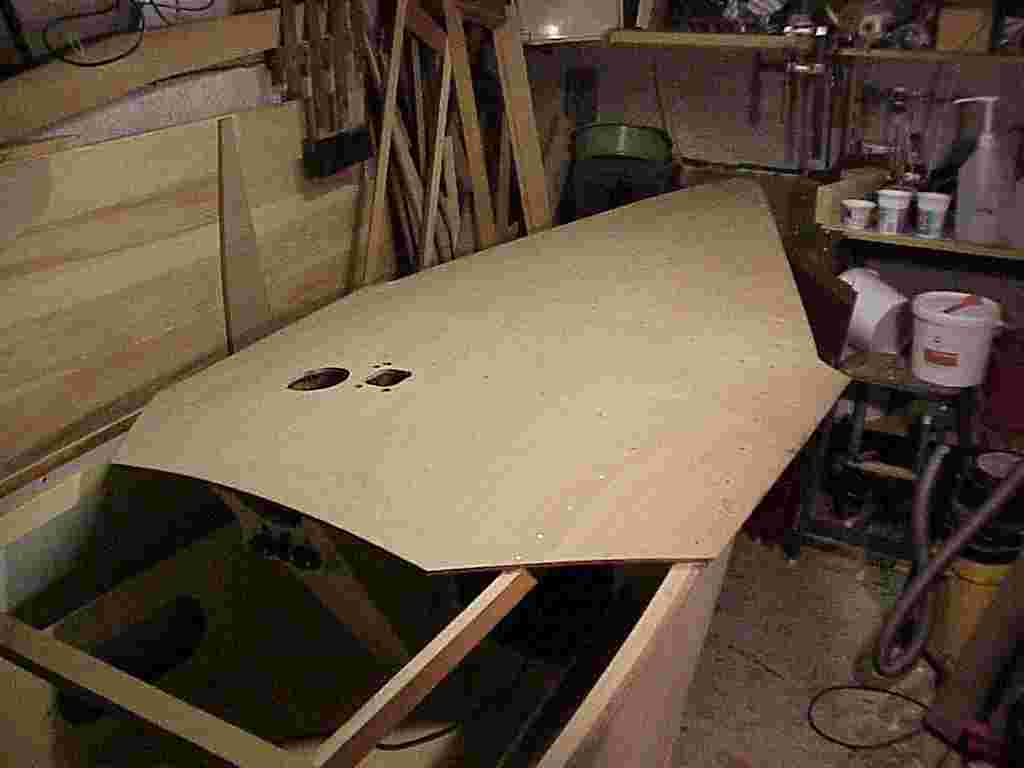 Fore deck. Leave the extra on the sides, it makes it easier to pull into position.